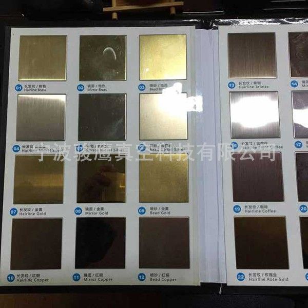 可鍍制TiN鈦金裝飾膜層;TiC、CrC槍黑色、黑色、灰色系列膜層;ZrN鋯金、香檳金、黃銅色系列膜層;TiCN玫瑰金、玫瑰紅、酒紅、咖啡色系列膜層;TiO 寶石藍、翠綠、粉紅、彩虹色系列膜層。