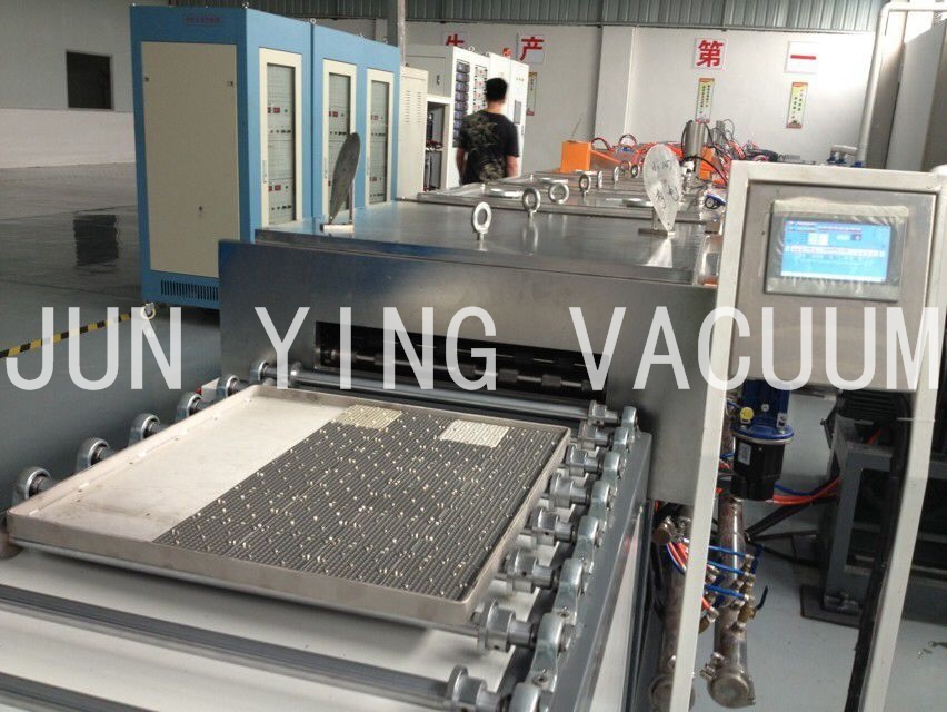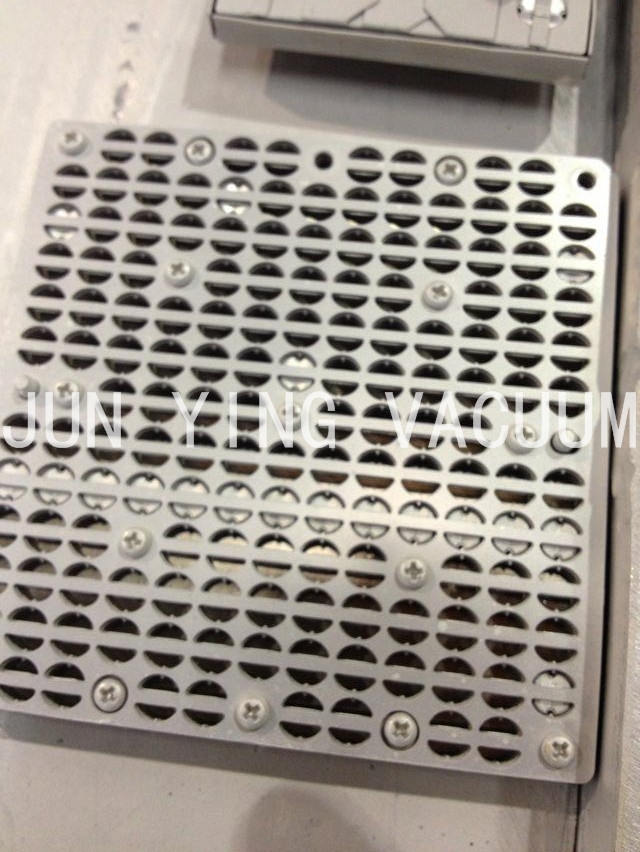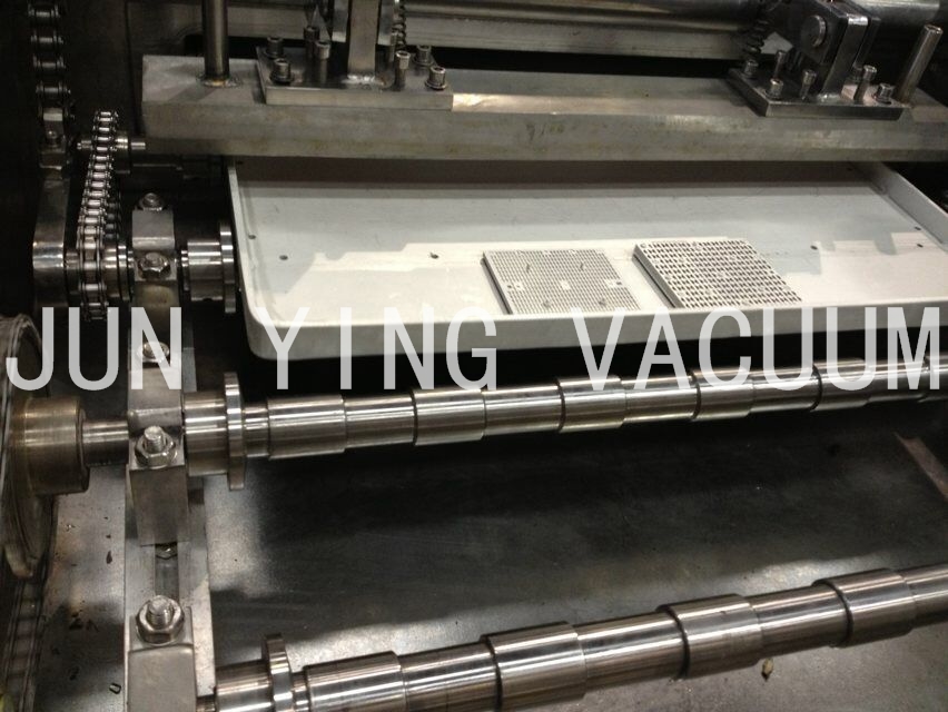 2.進料區:可放置625mmχ505 mm料盤二十盤,一盤Max 35個治具,一次入料Max可達700個治具,自動送料盤結構配置一個KY- 400高真空分子泵或10 FCryo pump及採用Rotary pump + Booster之低真空pump組合,抽氣速率可達10000 L/hr