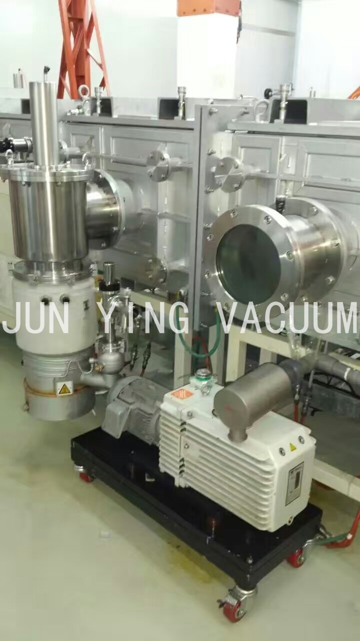 2.進料區:可放置625mmχ505 mm料盤二十盤,一盤Max 35個治具,一次入料Max可達700個治具,自動送料盤結構配置一個KY- 400高真空分子泵或10 FCryo pump及採用Rotary                   pump + Booster之低真空pump組合,抽氣速率可達10000 L/hr